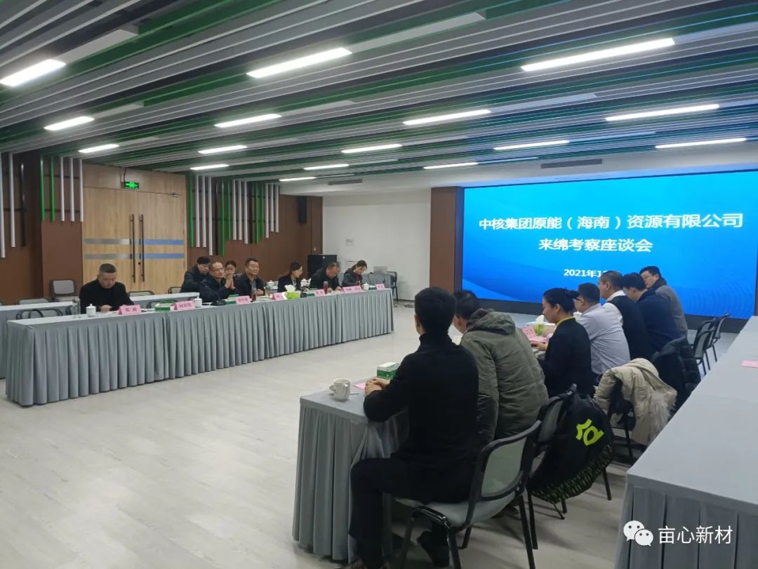 2021年12月22日至23日,中核集團原能(海南)資源有限公司副總經(jīng)理付夢來帶隊來綿考察調(diào)研畝心新材。