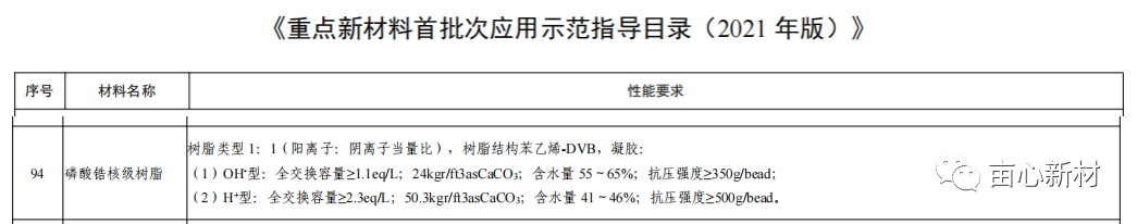 2022新年伊始,國(guó)家工信部發(fā)布的《重點(diǎn)新材料首批次應(yīng)用示范指導(dǎo)目錄(2021年版)》中,第94項(xiàng)新材料為“磷酸鋯核級(jí)樹(shù)脂”,畝心創(chuàng)業(yè)團(tuán)隊(duì)堅(jiān)守多年的磷酸鋯及磷酸鋯核級(jí)樹(shù)脂項(xiàng)目終于被國(guó)家“點(diǎn)名”了!